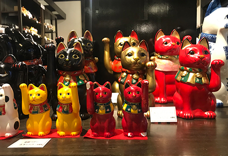 Hikone is known to be the origin for “Maneki-neko (Beckoning cat)”. “Maneki-neko” is a cat decoration that invites people with their front feet, and are considered to be a lucky charm for business prosperity. Why not take home a “Maneki-neko” from “Shofuku Honpo”, a maneki-neko specialty store? At the Yumekyōbashi Akari-kan which houses the “Shofuku Honpo”, there is a museum that sells various goods such as Hikone’s traditional craft, the Japanese candle, as well as diverse cultural collections and is a place that must be visited.