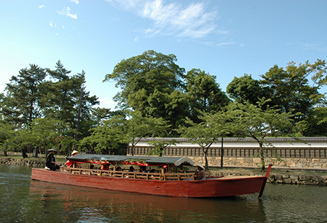 2乘坐屋形船環繞護城河,體驗戰國大名的行舟樂趣。